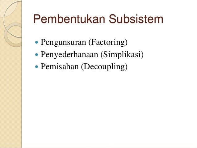 12.  Pengunsuran (Factorin Pembentukan Subsistem Pemisahan (Decoupling)  Penyederhanaan (Simplikasi)